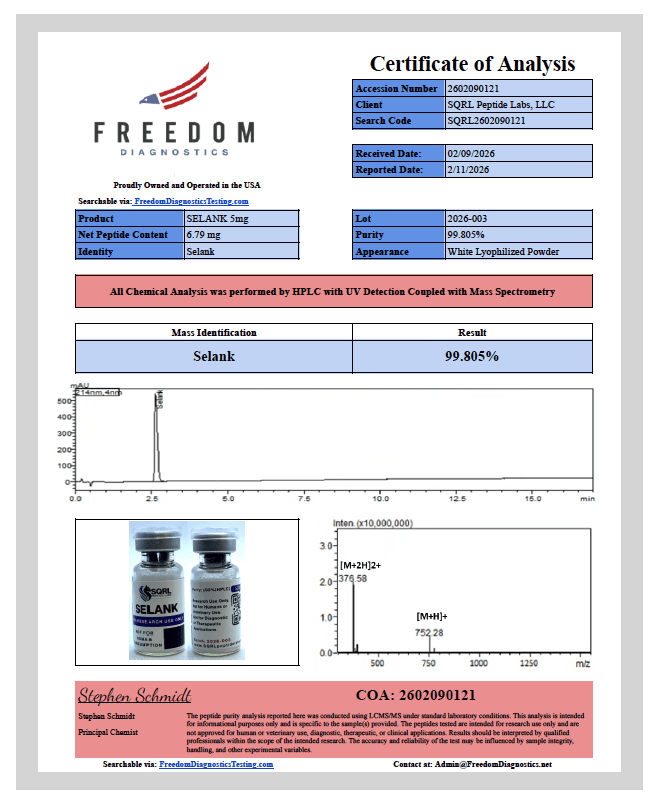 Designed for laboratory and scientific research only, Selank provides researchers with a stable, high-purity tool to investigate peptide activity in controlled experimental models.
