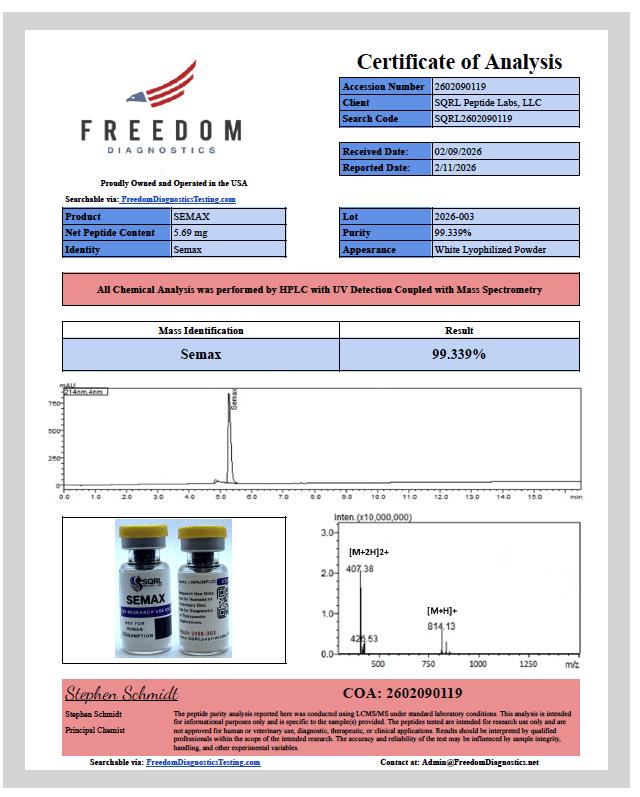 Researchers use Semax to explore BDNF regulation, dopaminergic and serotonergic activity, neuroplasticity, and recovery after ischemic injury. Its ability to cross the blood-brain barrier makes it a powerful tool for studying brain health, learning, and memory mechanisms.